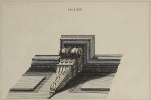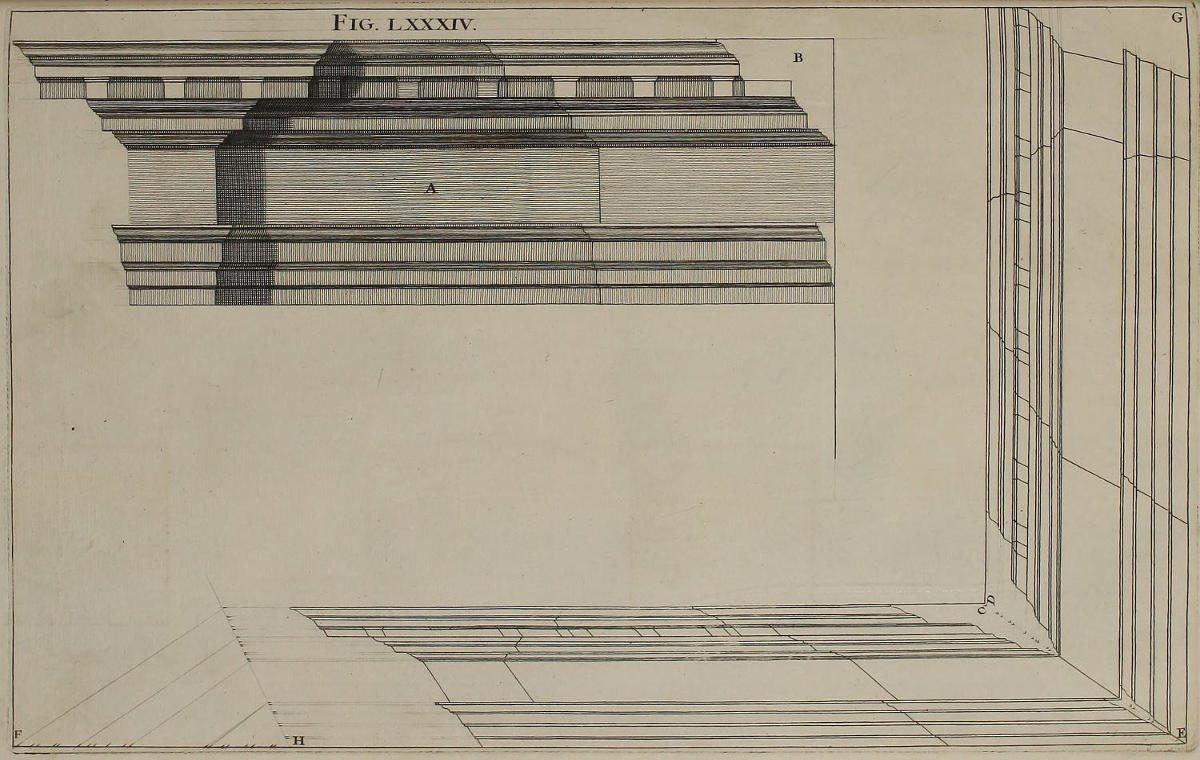 | Coronix Corinthia horizontaliter contracta, | LXXXV. | A Corinthian Cornice in horizontal Perspective. |
