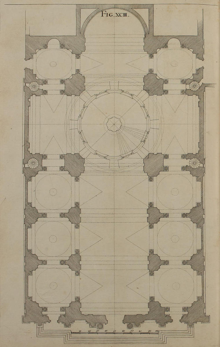 | Vestigium templi Ludovisiani S. Ignatii almæ urbis, | XCIII. | The Geometrical Plan of S. Ignatius’s Church at Rome. |