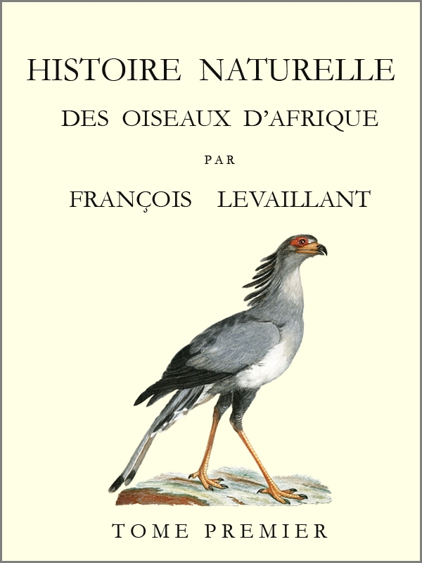 En publiant l’Histoire des oiseaux d’Afrique, j’ai cru que c’étoit rendre service à la science que de faire mention de toutes les espèces rares et non décrites que j’ai trouvées dans les différens cabinets de l’Europe. J’ai eu soin en même tems de désigner toujours la collection d’où je les ai tirées: je préviens les lecteurs que tous les oiseaux qui se trouvent sans cette indication appartiennent à ma collection, et que les numéros qui sont placés en tête de chaque oiseau correspondent à la planche qui représente l’espèce dont je donne la description.