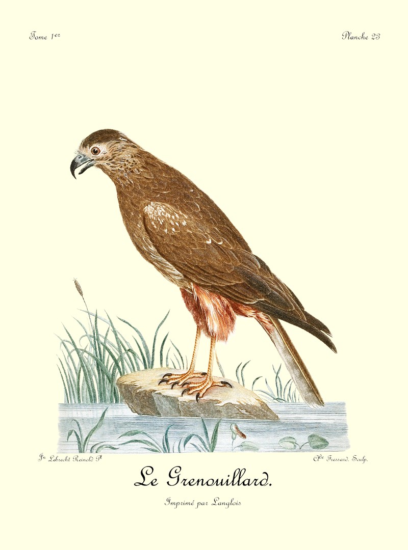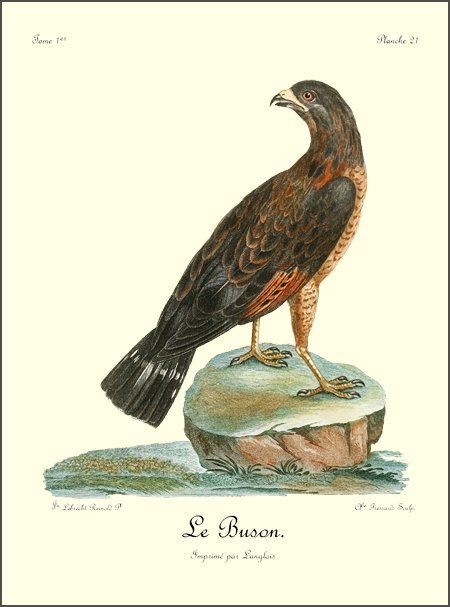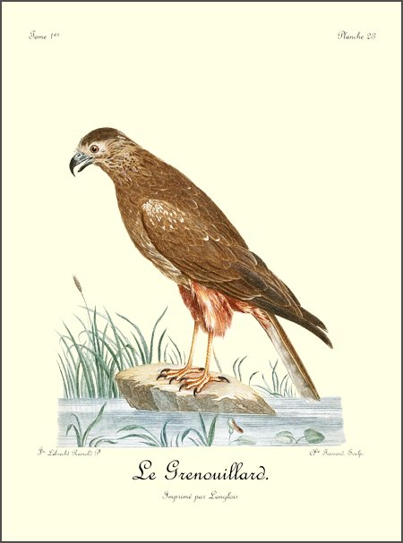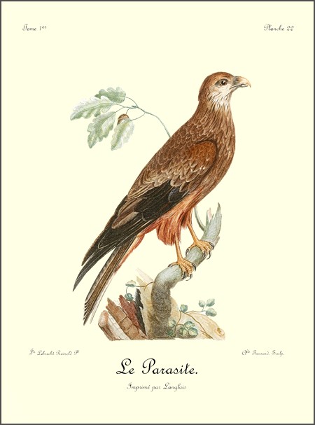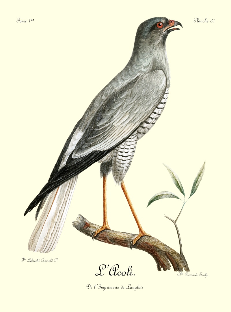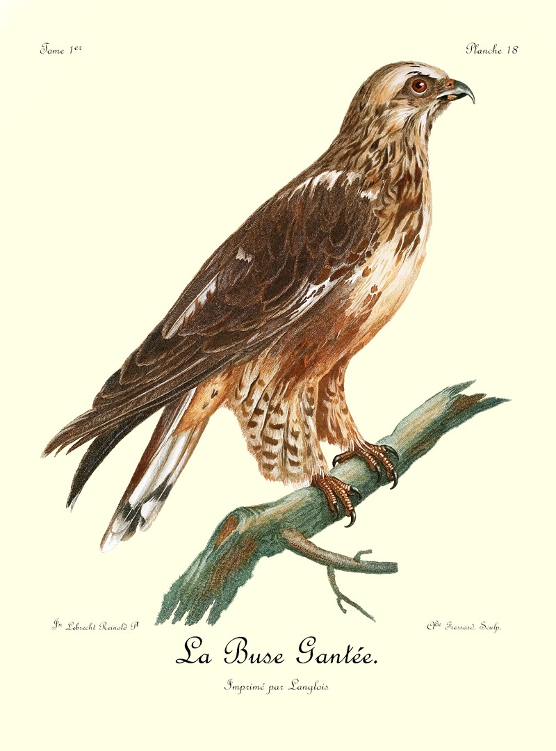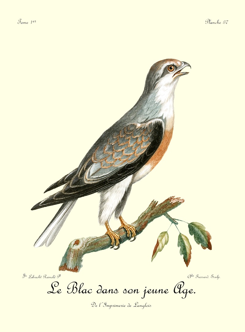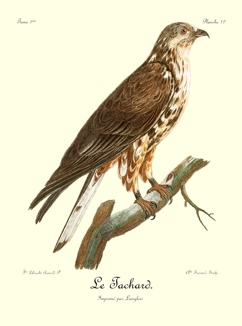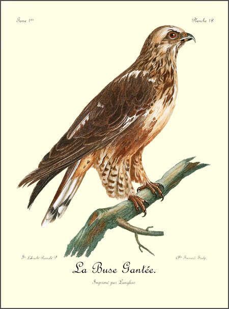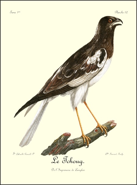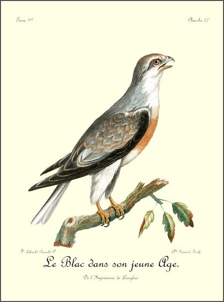 J’ai eu long-tems le plaisir d’observer un couple de Blanchards, mâle et femelle, qui étoit établi près de mon camp dans les bois du charmant et délicieux pays d’Auteniquoi. Je les ai examinés pendant plus de trois semaines avant de les tuer. Assis au pied d’un arbre, je passois des matinées entières à observer tous leurs mouvemens et toutes leurs ruses. Comme, dans ce tems, ils étoient occupés à couver, et que jamais le nid n’étoit vaquant, je me voyois sûr de les retrouver chaque jour dans les mêmes lieux. Quand l’un d’eux s’étoit saisi d’une proie quelconque, tous les corbeaux des environs accouroient par troupes innombrables, criant autour de lui, et cherchant à avoir leur part du butin; mais l’aigle paroissoit mépriser ces oiseaux piaillards, qui, n’osant approcher de trop près, se contentoient de se jeter sur les débris qui tomboient de l’arbre où le Blanchard dévoroit paisiblement sa proie. Quand il se présentoit dans l’arrondissement un oiseau de rapine quelconque, le Blanchard mâle le poursuivoit à toute outrance jusqu’à ce qu’il fut hors de son domaine. Les plus petits oiseaux pouvoient tous impunément s’approcher jusque sur le nid même de cet aigle, qui ne leur faisoit aucun mal; ils étoient même là en sûreté contre les attaques des oiseaux de proie d’un ordre inférieur.
