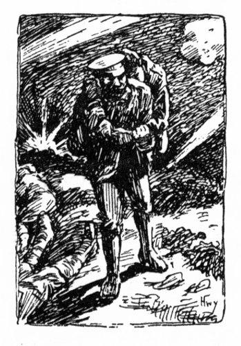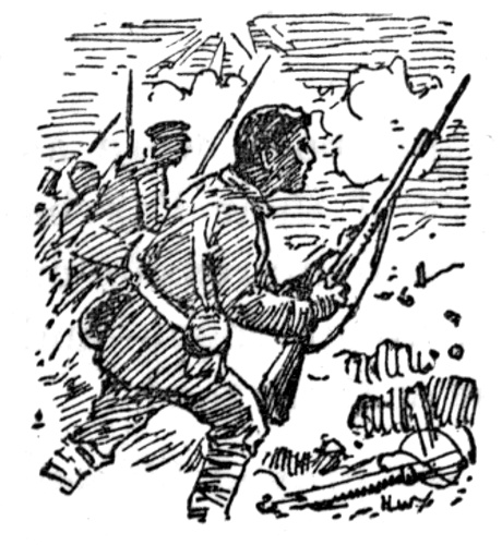 When left to himself the manly Maori boy pictured up the whole scene as well as he could, and longed to get back to the trench—or over the parapet—to pay out the demons who had outraged Marie's noble people. He was getting well unusually quickly, and though loth to leave the [pg 24] charmed spot, he felt that he would soon be fit to fight again. He was busy thinking out all kinds of plans for getting even with the Huns; and he formed a mental picture of the Kaiser which was not very complimentary to that potentate. Henare saw him as a big villain with short, sharp horns above his ears, to match his upturned moustache; small wicked eyes, and a big mouth, with little tusks protruding.