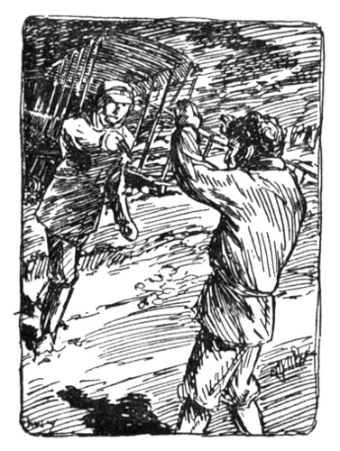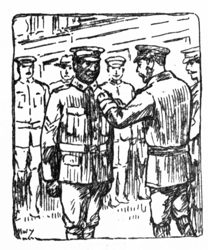 "Py cripes, you look out when I come back if you talk too much wid te Kiri. She no belong to you. She my wahine all right. No good yer trick, you better come to te war; no stop home spoilin' te dog fight [pg 14] and try take another feller gel when him away in Shermany. Me te crack shot now so you look out."