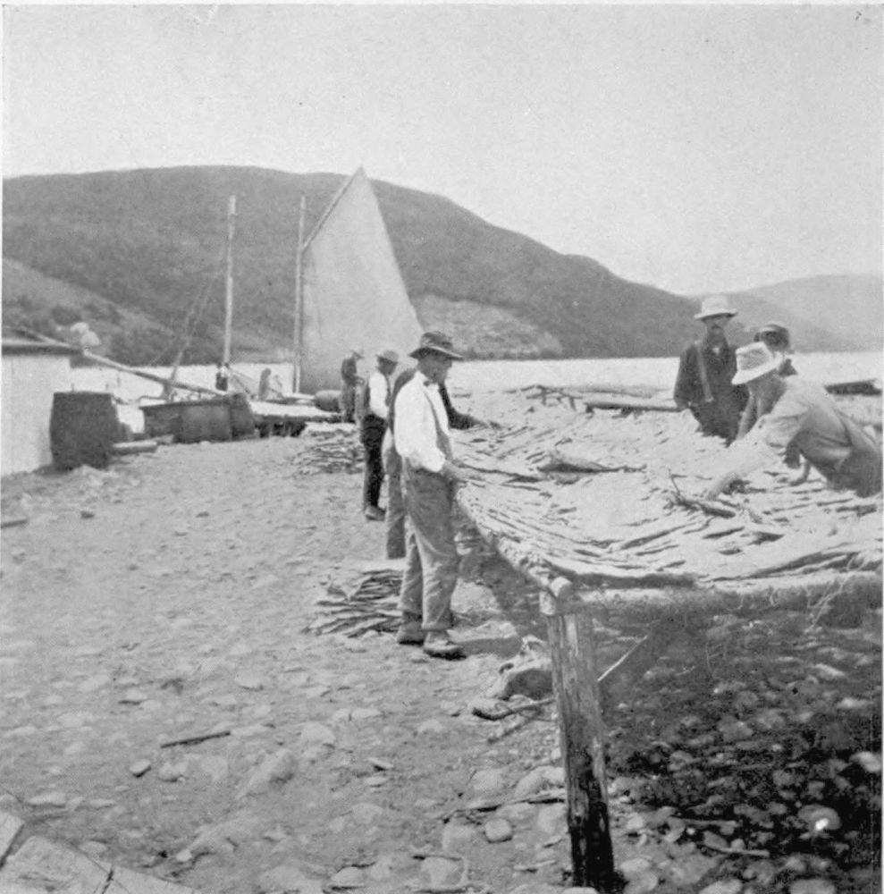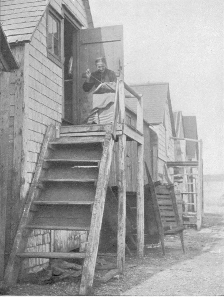 Inanimate individualities of every beach are the spreading fish “stages” generally of green or auburn-tinted spruce-boughs. These stage the women of the ‘Longshore. It is a most interesting item of the Court of King Cod that the entire family is here, even to the baby.