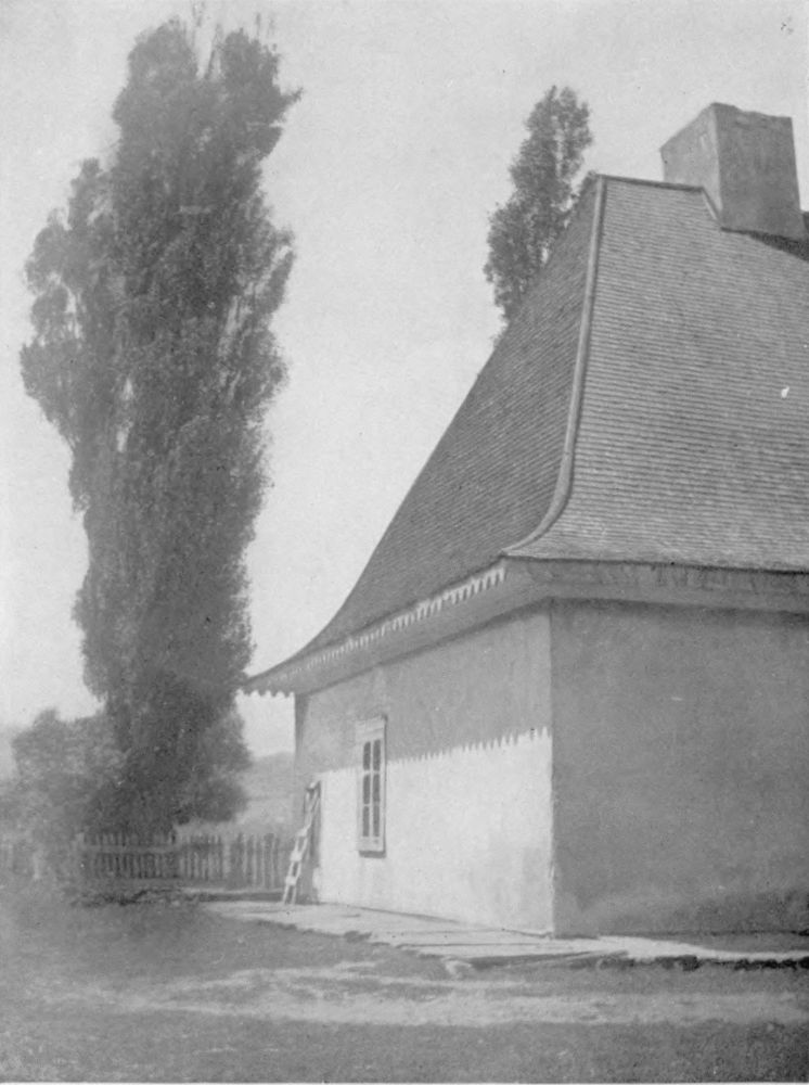 To the period of the Post Road belongs that old landmark of time and the road, Grand Pré Church, outstanding figure of the countryside in which dwelt Evangeline and her people. In order to catch its romantic spirit, the time to see Grand Pré church is in the evening, when there is just a wee flare of daylight and a soft mist arises from the waters of Minas, shedding itself like a diaphanous veil over the land, as one strolls up the country-road that comes through the village from the North, under willows and poplars, to the door of the old church and then rambles off to the South between clover fields and stacks of hay; the hay resembling Hottentot villages outlined against the ashes-of-roses sky. It is at dusk, that the rather austere lines of window, tower and roof lose their sharp, almost Quaker-like severity. It is at that hour that the old stones of the graveyard become time-softened, ivory-tinted pages of history assembled under the stately poplars. Inside the church, in the strong, simple lines of its painted box-pews and high pulpit; in the old gallery; and in the square windows with little panes, there is the quaint atmosphere which clings especially to old churches of the early Colonial Period. Sitting in these old pews during service is to be carried away on the wings of history to a pivotal point, whence to behold a Cyclorama of all Canada. To the left, on this great canvas—Glooscap and Micmac; succeeded by crude Breton and Portuguese fishermen in their strange bateaux; followed by stirring panels of Annapolis Royal and Louisburg, contrasted against panels of tenacious pioneer Scotch and English settlers; in the next, the clash between France and England for supremacy, not alone in this sweet countryside of Grand Pré, but in every other contained in the word Canada. These are followed by a panel of United Empire Loyalists—very realistic this, because, in the village, you have just been looking at an old oil-painting of Colonel Crane and fingering his fine old sword, that never wavered in its allegiance.{7}