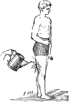 Im Leben des berühmten Paters Ravignan S. J. kommt folgende Stelle vor: „Seine Krankheit, ein Halsübel, wurde durch die Anstrengung (der Pater war ein berühmter Prediger, der in Paris, London und vielen anderen großen Städten mit apostolischem Eifer seines Amtes waltete) verschlimmert und ging bald in ein chronisches über.... Die Luftröhre war nur mehr eine Wunde, die Stimme blieb erloschen und sein Organ wie erschöpft. Zwei ganze Jahre (1846–1848) sollten in Untätigkeit und Leiden verfließen. Kuren an verschiedenen Orten, Luftveränderung im Süden, welche folgten, verliefen ohne Resultate. Im Juni des Jahres 1848 nahm Pater Ravignan Aufenthalt bei Doktor K. R.... in dessen Landhaus im Tale zu B.... Eines Morgens nach der Messe, zu der Stunde, die gewöhnlich alle Bewohner des Hauses vereinigte, kündigte der Doktor den Versammelten mit besorgter Miene an, daß Pater Ravignan sich leidender fühle und nicht zum Frühstück kommen werde. Damit verschwand er auch selbst wieder,.... ging zu dem Kranken und sagte ihm: ‚Stehen Sie auf und folgen Sie mir!‘ ‚Aber wohin führen Sie mich?‘ antwortete letzterer. ‚Ich will Sie ins Wasser werfen!‘ ‚Ins Wasser?‘ sagte Ravignan, ‚mit dem Fieber, mit dem Husten! Doch wohlan, es tut nichts, ich bin in Ihren Händen und muß Ihnen gehorchen.‘ Es handelte sich um ein sogenanntes Sturzbad, ein gewaltsames, aber wirksames Mittel, wie der Biograph (Lebensbeschreiber) sagt. Der Erfolg war ein augenscheinlicher. Schon zum Mittagessen brachte der Doktor triumphierend seinen Kranken in gutem Wohlbefinden mit, und der am[S. 5] Morgen noch Stumme erzählte am Abende die Geschichte seiner Heilung.“