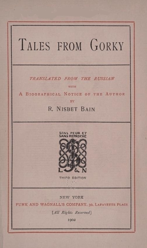 [6] In the Monthly Review for December. In the same number of the same periodical appeared the first English translation of one of Gorky's tales, curiously enough, the first tale he wrote.
