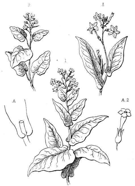 1. Nicotiana Tabacum; 2. N. Rustica; 3. N. Persica.