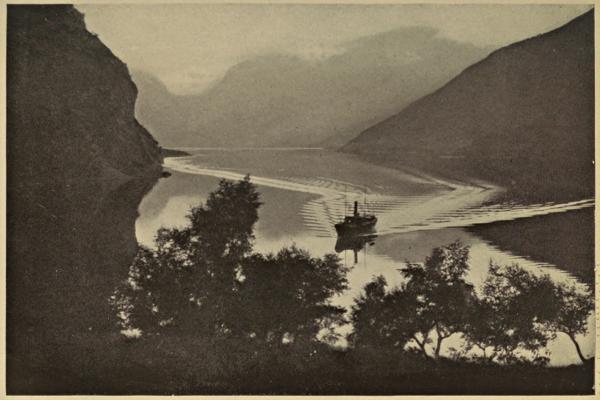 However, there is a story connected with the Rjukan Falls, a little farther on, which is perhaps a trifle less mythical. A maiden named Mary had a lover named Eystein. On the face of the precipice over which the Rjukan plunges was a narrow path called Mari-sti, or “Mary’s Path.” Along this path Mary went to warn her lover of danger, for enemies were plotting against his life. He fled for safety, but returned after[314] many years along the selfsame path to claim his bride. In his haste he ran, and slipped and plunged down into the foaming abyss of the Rjukan. The story runs that “for many years after this a pale form, in whose eyes a quiet madness spoke, wandered daily on the Mari-sti and seemed to talk with someone in the abyss below. Thus she went, until a merciful voice summoned her to joy and rest in the arms of her beloved.”