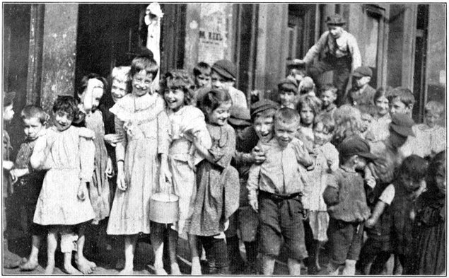 To the child as to the adult the principal evils of poverty are material ones,—lack of nourishing food, of suitable clothing, and of healthy home surroundings. These are the fundamental evils from which all others arise. The younger children are spared the anxiety, shame, and despair felt by their parents and by their older brothers and sisters, but they suffer terribly from neglect when, as so often happens, their mothers are forced to abandon the most important functions of motherhood to become wage-earners. The cry of a child for food which its mother is powerless to give it is the most awful cry the ages have known. Even the sound of battle, the mingled shrieks of wounded man and beast, and the roar of guns, cannot vie with it in horror. Yet that cry goes up incessantly: in the world’s richest cities the child’s hunger-cry rises above the din of the mart. Fortunate indeed is the child whose lips have never uttered that cry, who has never gone breakfastless 4to play or supperless to bed. For periods of destitution come sooner or later to a majority of the proletarian class. Practically all the unskilled laborers and hundreds of thousands engaged in the skilled trades are so entirely dependent upon their weekly wages, that a month’s sickness or unemployment brings them to hunger and temporary dependence. Not long ago, in the course of an address before the members of a labor union, I asked all those present who had ever had to go hungry, or to see their children hungry, as a result of sickness, accident, or unemployment to raise their hands. No less than one hundred and eighty-four hands were raised out of a total attendance of two hundred and nineteen present, yet these were all skilled workers protected in a measure by their organization.
