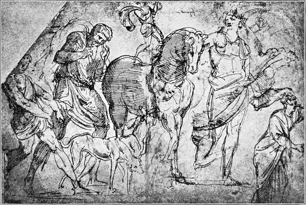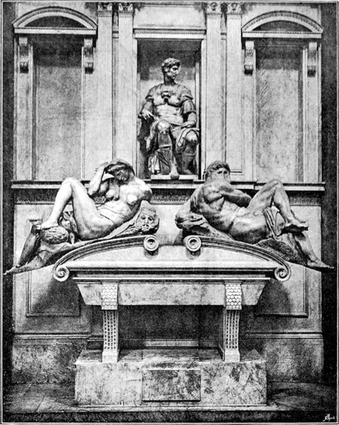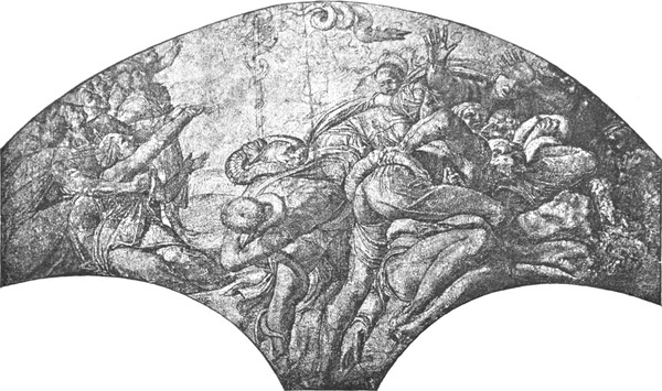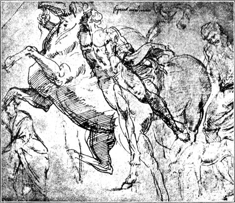 Leonardo da Vinci ließ leichten Herzens die angefangene Arbeit im Regierungspalast zu Florenz liegen, um sich anderweitiger Thätigkeit zuzuwenden. Für Michelangelo begann mit dem Liegenlassen des Schlachtenbildes die Qual seines Lebens, daß das Schicksal es ihm nicht vergönnte, die großen Schöpfungen, welche er mit der mächtigsten Begeisterung begann, in der beabsichtigten Weise zu Ende zu führen.