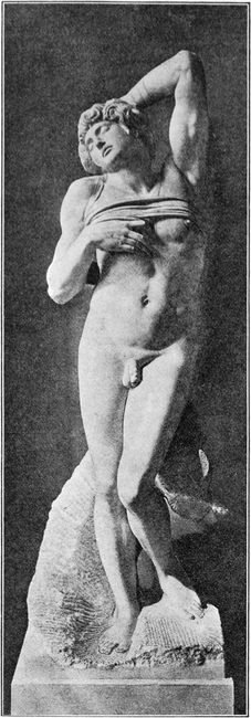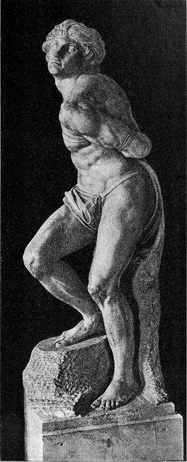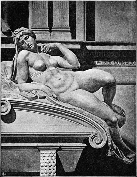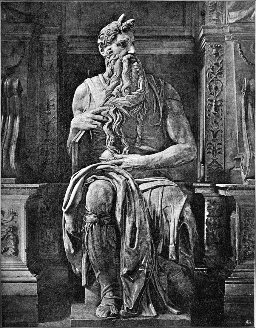 Als er den David und den Karton der Pisanerschlacht vollendet und dadurch als Bildhauer und als Maler — wenigstens als Zeichner — einen Ruhm erreicht hatte, der ihn neben und über die größten Meister stellte, hatte er sein dreißigstes Jahr noch nicht überschritten. Mit diesen Werken schließt die Jugendzeit Michelangelos — soweit man überhaupt von Jugend sprechen kann bei einem Manne, aus dessen Leben kein Zug von jugendlichem Frohsinn spricht, und dessen früheste Arbeiten nichts von jugendlicher Unsicherheit aufweisen. Bis dahin sind die von ihm geschaffenen Gestalten, wenn auch nicht aus heiterer, so doch aus ruhiger Empfindung hervorgegangen. Aus demjenigen, was er nach dem Jahre 1505 geschaffen hat, spricht fast überall eine umdüsterte Stimmung, ein Versenken in schwere, grübelnde Gedanken. Seine Gestalten werden die Träger von tiefen namenlosen Gefühlen, wie sie sonst nur in Tönen oder auch in Farbenstimmungen zur künstlerischen Aussprache gelangen können, für die er aber in Formen ein Ausdrucksmittel gefunden hat. Dabei kleiden sich[S. 21] diese Äußerungen persönlichen Gefühls in eine Großartigkeit der künstlerischen Gestaltung, wie er selbst sie vorher nie erreicht hat, und wie sie keinem anderen seit den Blütezeiten des klassischen Altertums auch nur annähernd erreichbar gewesen ist.