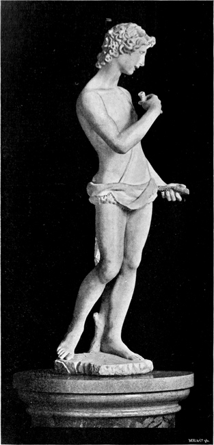 Auch ein Michelangelo konnte nicht unausgesetzt an einem marmornen Kolossalbild arbeiten. In den Jahren von 1501 bis 1504 schuf er, abgesehen von den Apostelfiguren für Siena, noch eine Anzahl von Werken, die ihm eine Erholung von der großen Arbeit sein mochten. Ein zweiter David, in Lebensgröße, wurde bei ihm 1502 von Piero Soderini, der seit kurzem unter dem Titel eines Bannerherrn auf Lebenszeit an der Spitze des florentinischen Staatswesens stand, bestellt. Diese Figur sollte in Erzguß ausgeführt werden; sie war bestimmt, als Geschenk der florentinischen Regierung an Pierre de Rohan, Marschall von Giè, geschickt zu werden; auf diesem Wege hoffte man das Wohlwollen des französischen Königs Ludwig XII, bei dem Rohan in großem Ansehen stand, für die Republik zu gewinnen, die sich durch den Krieg mit Pisa in schweren Verlegenheiten befand. Aber der Marschall fiel in Ungnade, bevor das Bildwerk fertig war, und die Regierung von Florenz sah sich nicht mehr veranlaßt, ihm das versprochene Geschenk zu übersenden; sie fand es zweckmäßiger, dasselbe dem Schatzmeister Ludwigs XII, Florimond Robertet, zuzuwenden. An diesen wurde das Erzbildwerk, in welchem Michelangelo den David als Sieger, mit dem Haupt des Goliath unter den Füßen, dargestellt hatte, im Jahre 1508 geschickt. Es hat in Frankreich in verschiedenen Schlössern gestanden und ist wahrscheinlich während der großen Revolution zu Grunde gegangen.