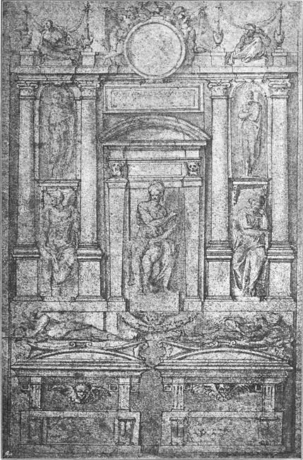 Michelangelo begab sich nach der Enthüllung des Erzbildes sofort nach Florenz zu seinen Angehörigen. Es verdient erwähnt zu werden, daß er jetzt erst, durch eine notarielle Urkunde vom 13. März 1508, von seinem Vater für selbständig erklärt wurde. Aber er durfte nicht lange in der Heimatstadt verweilen. Da er einmal wieder in den Dienst des Papstes getreten war, mußte er auch nach Rom zurückkehren. Zwar hatte auch Soderini einen Plan mit Michelangelo vor: er beabsichtigte die Errichtung eines Gegenstückes zum David. Aber der Papst hielt den glücklich Wiedergewonnenen fest und gewährte nicht einmal die Bitte Soderinis, denselben gegen Ende des Jahres 1508 auf nur 25 Tage zu einer Reise nach Florenz zu beurlauben.