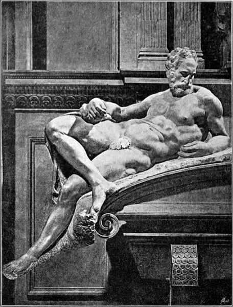 Piero de’ Medici, Lorenzos Sohn und Nachfolger, hatte nicht dessen glänzende Eigenschaften geerbt. Zwar setzte er den Michelangelo, der ihm in dem ungewöhnlich kalten Januar des Jahres 1494 den Gefallen that, im Hof des Palastes einen kunstvollen Schneemann aufzubauen, wieder in die Stellung ein, welche derselbe unter Lorenzo innegehabt hatte, aber er schätzte einen spanischen Schnellläufer ebenso hoch, wie den jungen, schon so großen Künstler. Florenz ertrug die Herrschaft Pieros nicht lange; im November 1494 wurden die Mediceer vertrieben. Michelangelo ging diesem Ereignis, das er herannahen sah, aus dem Wege; der Traum eines Freundes, dem Lorenzo der Herrliche warnend erschienen, soll ihn veranlaßt haben, Florenz zu verlassen. Er begab sich zunächst nach Venedig und dann, da er dort keine Beschäftigung fand, nach Bologna, wohin sich auch die Mediceer geflüchtet hatten. Hier brachte ihn der Umstand, daß er es versäumt hatte, sich ein Kennzeichen geben zu lassen, welches zu tragen das Mißtrauen der städtischen Regierung jedem Fremden vorschrieb, in Verlegenheit. Er wurde zu einer Geldstrafe von 50 Bologneser Pfund — eine Summe,[S. 6] die auf ungefähr 64 Mark berechnet wird, — verurteilt, und er besaß nicht mehr soviel Geld. Einer der Stadtvorsteher, Giovan Francesco Aldovrandi, hatte Mitleid mit dem jungen Künstler, befreite ihn aus seiner Verlegenheit und gab ihm ehrenvolle Beschäftigung. An dem berühmten Grabmal (Arca) des heil. Dominicus hatte der kurz vorher verstorbene Bildhauer Niccolo von Bari — gewöhnlich nach seiner Thätigkeit an eben diesem Werk Niccolo dell’ Arca genannt — das kleine Standbild des heiligen Petronius unfertig zurückgelassen, und zu einem leuchtertragenden Engel, mit dem er das Grabmal an der einen Seite geschmückt hatte, fehlte das Gegenstück. Michelangelo machte den Engel und vollendete das Heiligenbild. Beide Figuren, die durch ihren eigentümlich derben Faltenwurf sich von den Arbeiten der älteren Meister augenfällig unterscheiden, befinden sich noch an ihren Plätzen. Eine Figur des heiligen Proculus, welche Michelangelo außerdem noch für das Grabmal des heil. Dominicus gemacht haben soll, ist nicht mehr vorhanden. Michelangelo blieb[S. 7] länger, als es die Ausführung dieser verhältnismäßig geringfügigen Arbeiten erforderte, in Bologna. Sein Gönner Aldovrandi, dem es besonderen Genuß bereitete, wenn Michelangelo in seiner toskanischen Aussprache aus den Werken der großen toskanischen Dichter Dante, Petrarca, Boccaccio vorlas, hätte ihn gern dort festgehalten. Aber noch im Laufe des Jahres 1495 kehrte Michelangelo, der in Bologna seine Zeit zu verlieren glaubte, nach Florenz zurück. Hier stand damals der begeisterte Prediger Savonarola an der Spitze des Volkes; auf dessen Veranlassung wurde im Palast der Signoria der große Saal erbaut, der die Versammlungen der durch die neue Verfassung geschaffenen zahlreichen Volksvertretung aufnehmen sollte. Es heißt, daß neben anderen berühmten Künstlern auch Michelangelo ungeachtet seiner Jugend über diesen Saalbau um Rat gefragt worden sei.