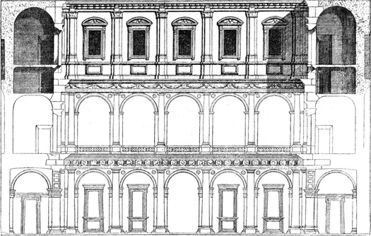 So lebte Michelangelo über drei Jahre lang, von 1489–1492, im Mediceerpalast. Er speiste mit den Söhnen des Staatsoberhauptes, er genoß die Unterweisungen von deren Erzieher, dem berühmten Gelehrten und Dichter Poliziano, und bewegte sich in den bunten Gesellschaften und den Versammlungen geistreicher Männer, die das Haus des großen Mediceers belebten.