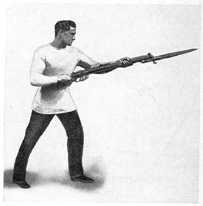 After every thrust a rapid “withdrawal,” essential to quick work with the bayonet, should be practised before returning to the guard.