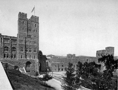 Despite the successful attempts of the architect to give to the magnificent new buildings at West Point a mediæval character, there is nothing about them to suggest a feeling of oldness, a feeling that they are linked with the history of the place. Not until one wanders among the ruins of old Fort Putnam, explores the crumbling works of the chain of Redoubts on the surrounding hills, or rambles over the débris of Fort Constitution on Constitution Island, does he feel the flavor of age, the romance of West Point of the past. It is only then that the imagination races back over the years to the days of the Revolution where it pauses to rebuild the stirring events that filled the daily lives of our ancestors in their desperate struggle for our independence. Looking backward through the vista of more than a century the most commonplace 2 happenings seem powdered with the golden dust of romance. Interwoven with each event are the names of the men who helped to make possible these free United States: Washington, Hamilton, Knox; and of him who was almost successful in thwarting their efforts, the traitor Benedict Arnold.