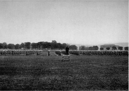 For many years the Military Academy was what its name implies, an Academy, but it has expanded from time to time until it is a military university, giving instruction for all branches of the service except the Medical Corps, and securing for each graduate a broad foundation which enables him to specialize in any direction by means of the various special schools for each branch. The glory of West Point, however, is in the West Point character, now well known in every civilized country in the world, with its reputation for fidelity, efficiency, discipline, and general uprightness. The standing army of the United States has always been too small for the tasks that have been laid upon it, and at every crisis it has had to train large forces of citizen soldiers summoned from civil life for the emergency. These citizen-soldiers, as well as the Regular Army itself, rely upon the scientific education and high character of the West Point graduate to keep the art of war abreast, if not a little ahead, of the times, and for vii the initiative and informing leaven to permeate the mass and to cause the firm progress of discipline and uprightness throughout the whole.