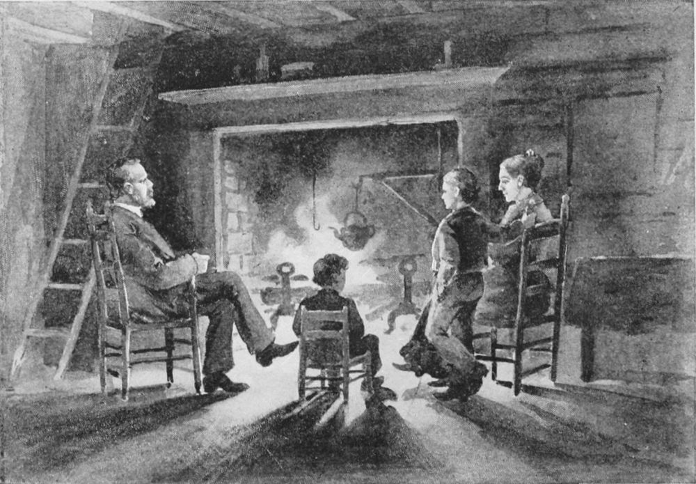 We sat up late before the big fire at night, our faces burning in the glow, and our backs and feet freezing in the draft that swept in from the imperfectly closing door, and then we boys climbed to our bed in the loft. We reached it by a ladder, which we should have been glad to pull up after us as a protection against Indians in the pioneer fashion; but, with the advancement of modern lux[Pg 25]ury, the ladder had been nailed to the floor.