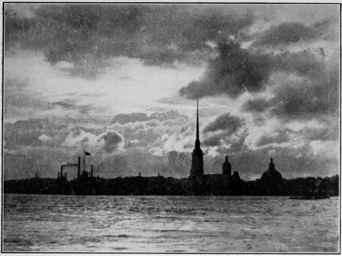 At last the “Internationale” was played for the very last time, the men did up their loosened belts and donned their coats and the audience streamed out into the cool summer air. My head ached violently. I walked along to the quay of the Neva. The river was superb. The sky-line of the summer night was tinged with delicate pink, blue, and green. I looked at the water and leaning over the parapet laid my throbbing temples against the cold stone. 284