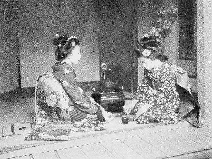 The code of Japanese courtesy is very exact and very exacting in the matter of farewells to the departing guest. Callers are invariably escorted to the door by the host, such members of his family as have been present, and a servant or two, all of whom stand in the portal bowing as the visitor drives away.