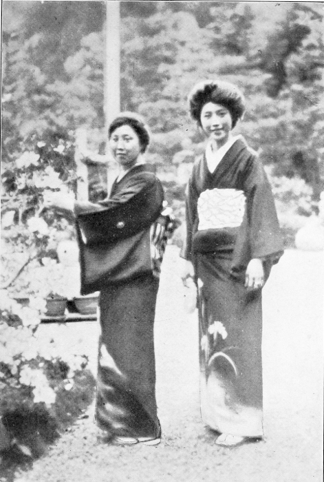 A house-guest is dispatched with even greater ceremony. The entire personnel of the establishment will gather at with profound bows and cries of "Sayonara!" the door to speed him on his way Members of the family, often the entire family, accompany him to the station, where appear other friends who have carefully inquired in advance as to the time of departure. The traveller is escorted [pg 341] to his car, and his friends remain upon the platform until the train leaves, when the bowing and "Sayonaras" are repeated.