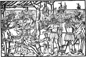 Reconoce el autor de Las nacionalidades que las tribus americanas, lo mismo cultas que salvajes tenían los vicios de la embriaguez, de la lujuria, de la prostitución y del juego. Por nuestra parte diremos que no debe olvidarse cómo el canibalismo se hallaba extendido por toda América de la manera más brutal y fiera, hasta el punto que muchos pueblos del Amazonas declaraban que «preferían ser comidos por sus parientes antes que por los gusanos[12]». Asimismo sabemos con toda certeza que unas tribus se contentaban con beberse la sangre del cautivo, otras se repartían en menudos pedazos las carnes del difunto, llegando el refinamiento de la crueldad al extremo de que si no alcanzaba el reparto para todos, cocían algún trozo en agua, distribuyendo luego el líquido con el objeto de que todos pudiesen decir que habían probado en mayor o menor cantidad la carne del enemigo.