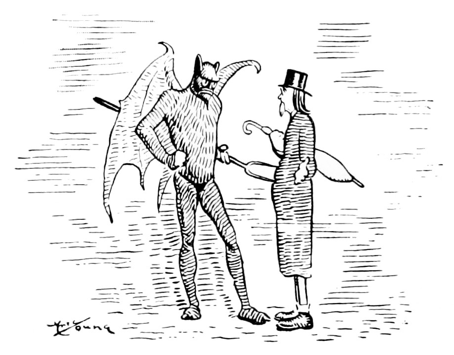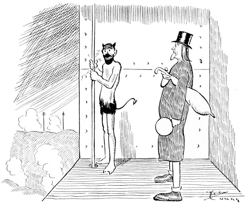 This volume contains seventy sketches and a dozen full-page pictures now printed for the first time. It also includes most of the drawings originally published in “Hell-up-to-Date.” Others were published in the “Cosmopolitan Magazine,” and a few were printed in the New York “Evening Journal” and “Judge.” Acknowledgment is due the Editors of the publications mentioned for permission to reprint them in book form.