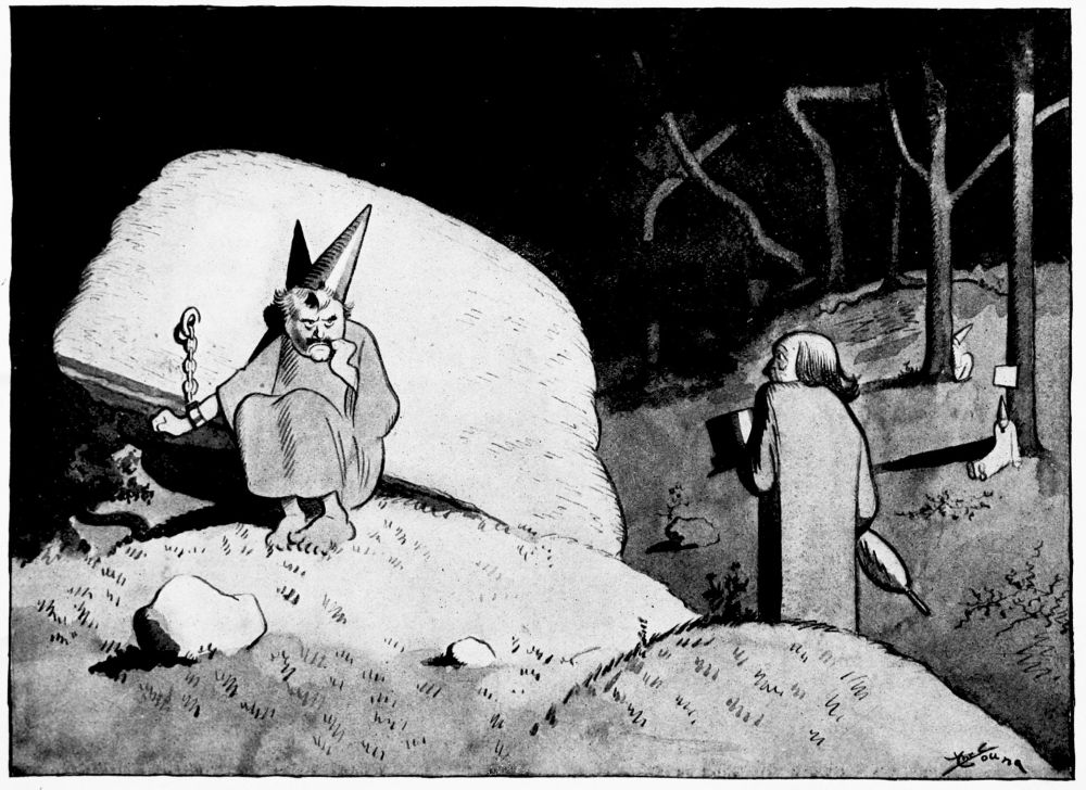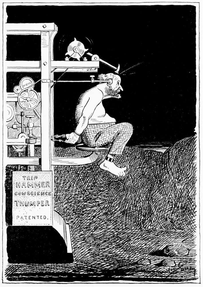 In the same vicinity Mr. Hunt finds a soul chained to a rock, wearing a heavy sheet-iron dunce cap.