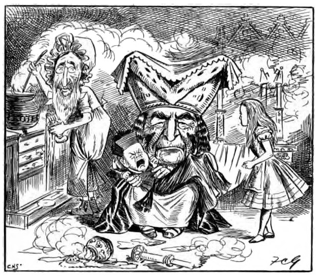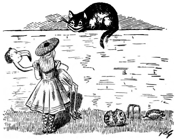“What happened to the baby?” asked the Cheshire Cat, appearing suddenly a few minutes later.