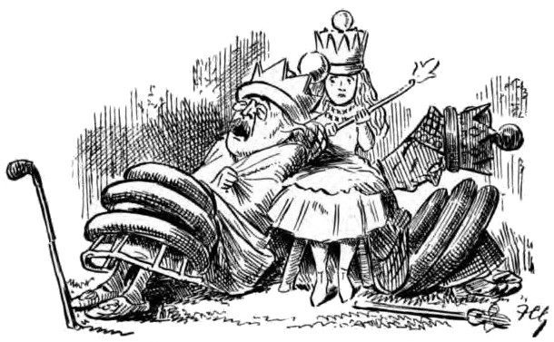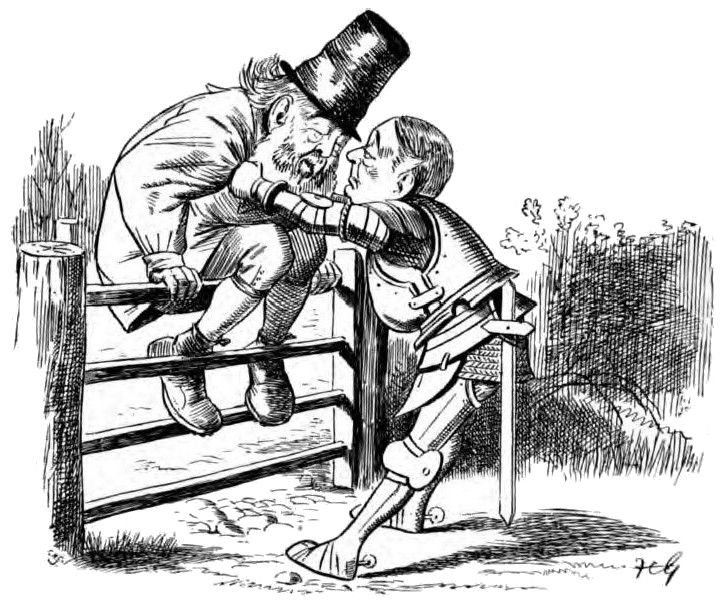 “Did you happen to meet any fighting men?” he asked Alice.