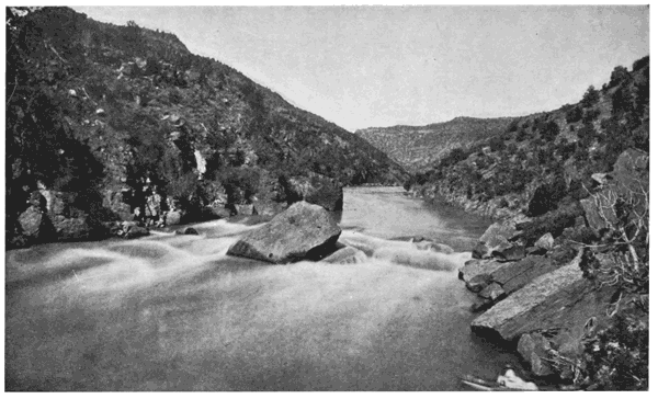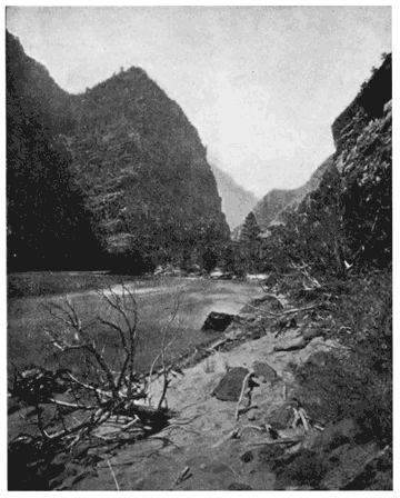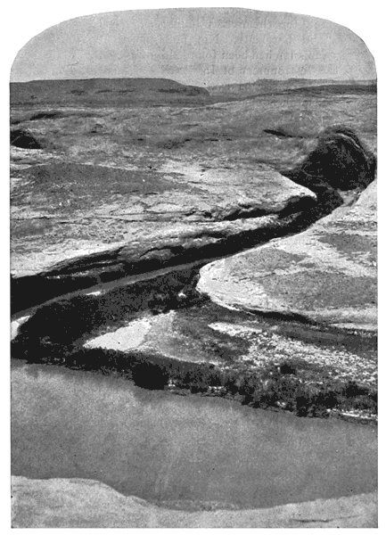 With the Wilderness, however, I can claim some degree of familiarity, for I may be said to have been "in at the death," as I was one of Powell's companions down the Colorado on his second voyage, 1871-72, and have been over portions of almost every one of the principal historical trails. I have travelled there on foot, on horseback, by boat, by waggon, and by railway,—even by Pullman "Palace" car. I have lived under its open sky through summers and through winters; its snows, its rains, its burning heat, have baptised me one of its children. In some cases my footsteps have been among the first of our race to break the surface; and if I have not visited every nook and corner of it during the last thirty four years it is the fault of my purse, not of my spirit.