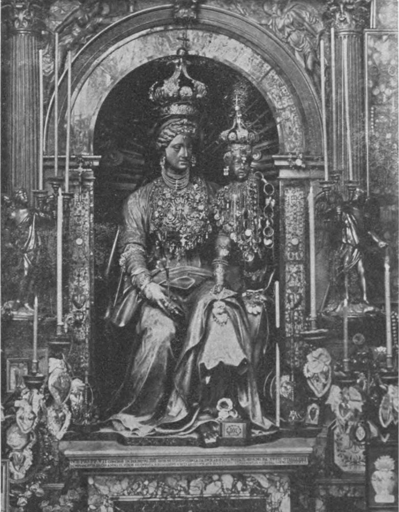 The Romans are devoted to their children, although their ways are not our ways; no woman of the upper class nurses her child, baby carriages are unknown, and swaddling is{6} still in vogue, at least with the lower classes. I know a young American lady, married to a Roman, who imported a perambulator for her first baby. The balia (wet-nurse), a superb cow of a woman, refused to trundle it, saying she was not strong enough, although I saw her carry a heavy trunk upstairs on her head while I was calling at the house! The baby is now a big eighteen-months-old boy; every day the balia goes out to give him an airing, carrying him in her arms! Here, leading-strings are facts, not symbols. In Trastavere, where I went sightseeing yesterday with Helen—peering, as she calls it,—the best sight we saw was a darling red-haired baby in leading-strings stumbling along in front of its grandmother. In the division of labor, the care of the children falls upon the grandmother; the mother’s time is too valuable; if she is not actually employed in earning money, there is the heavier work of the household to do. To use the pet phrase of the boarders, “things are different here from what they are at home.”{7}