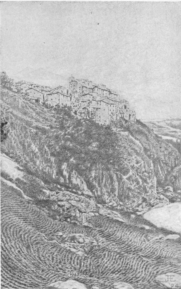 Here we are in a home of our own! One moonlight night J. came in with the news that he had found the very apartment he had been looking for; if I didn’t mind, we would go and see it at once. Naturally, I didn’t “mind.” We took a botte and threaded the network of narrow streets that lead down to the Tiber. We crossed the river, a huge brown flood, silver where it swirled about the piers; drove past the Castle of St. Angelo to the dingy old palace at the junction of the Borgo Nuovo and the Piazza San Pietro. He would not let me stop to look at anything, but hurried me through the entrance, along the corridor, past a courtyard with orange trees and a fountain where the nightingales were singing, up a high, wide stairway guarded by recumbent statues of terra-cotta Etruscan ladies, to a rusty old green door. We pulled a bell-rope and set a bell jangling inside. The door was opened by the esattore (agent), a brisk young man, who carried a three-beaked brass lamp by whose light we explored the apartment. They hurried me so that I could only see that the high ceilings were of carved wood, that the windows were large, and that{8} I liked the shape of the rooms. J. kept saying, “Wait till you see the terrace.” The terrace, or house-top, is a flat roof; it covers the whole length and breadth of the apartment, and belongs exclusively to it. A parapet three feet high runs around it; at one end is a small room with a second smaller terrace on its roof, reached by a flight of stone steps; at the other end is a high wall with a little, open belfry on top. The view is sublime; you look down into the Square of St. Peter’s with the Egyptian obelisk in the middle, Bernini’s great colonnades on either side, the Church of St. Peter’s at the end, with the Vatican, a big, awkward mass of a building, behind it, and in the foreground the twin fountains sending up their columns of powdered spray. On the left loomed the Castle of St. Angelo; it was light enough to see the time by the clock. You can imagine all the rest,—the city spread out like a map, the dark masses of trees marking the Pincio and the Villa Borghese, the Campagna, the Sabine and the Alban hills beyond, Mt. Soracte, our familiar friend, on the left, over and under all the soft deep notes of the big bell of St. Peter’s throbbing out the Angelus.{9}