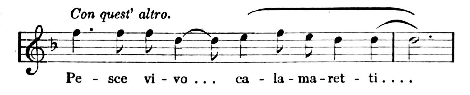 “Pesce vivo, calamaretti!” “Live fish, little inkstands!” The calamaretti, small cuttle-fish, are]