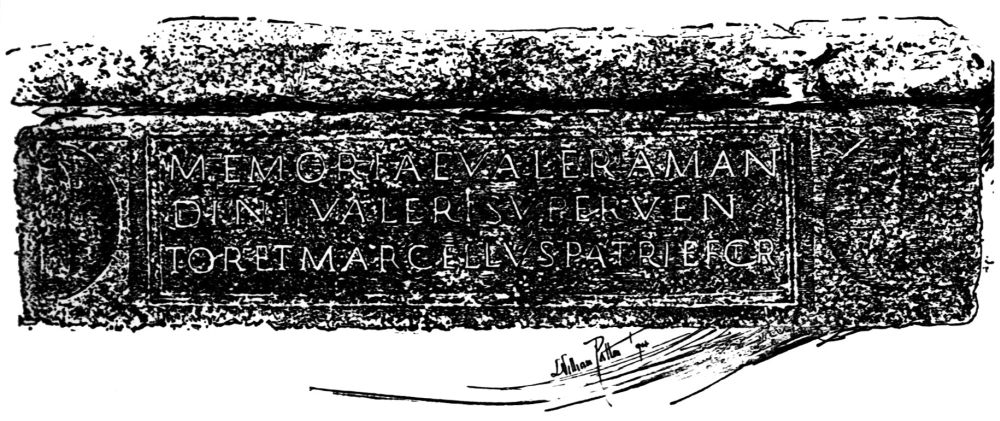 The kindly earth covers up and preserves many precious secrets,—“underground,” says Rabelais, “are all great treasures and wonderful things,”—to be revealed at some fitting time, when men’s minds shall be prepared to receive them. The earth preserves, for instance, the history of the ancient world—witness the revelations in our own time of the cuneiform tablets and the vast extension of the historic age: the arts of the ancient world, and their houses, and their manner of life—witness the revelations of Pompeii. Applied to Thorney, excavation has shown—what we certainly never could have known otherwise—that here, of all places in the world, in this little secluded islet in the midst of marshes (the most unlikely spot, one would think, in the whole of Britannia), there was a Roman{10} station, and one of considerable importance. The first hint of this fact was suggested when there was dug up in the North Green of the Abbey, in the year 1869, a fine Roman sarcophagus inscribed with the name of Valerius Amandinus. The lid has a cross upon it, from which it has been conjectured that the sarcophagus was used twice, its second occupant having been a Christian. What reason, however, is there for supposing that Valerius Amandinus himself was not a Christian?—for, at least a century before the withdrawing of the Legions, Roman Britain was wholly Christian. For more than two centuries Christians had been numerous. During the fourth century the country was covered with monastic foundations for monks and nuns. Christian or not, there stands the sarcophagus of Valerius Amandinus, for all the world to see, at the entrance of the Chapter-house; and why a Roman cemetery should be established in Thorney no one could guess. But some ten years ago there was a second discovery. In digging a grave under the pavement of the nave, there was found a mosaic floor in very fair condition. This must have belonged to a Roman villa. But, if one villa, why not more? The question has been settled by the discovery, of late years, wherever the ground on Thorney has been opened, of Roman bricks and fragments of Roman buildings. It is now impossible to doubt the existence here of a Roman station.