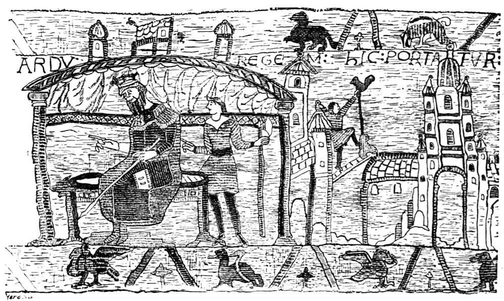 Since neither tradition nor history speaks to the contrary, we may suppose that Cnut was the first to build some kind of palace or residence in this place. His buildings are said to have been burned in the time of Edward; therefore he must have built something. His residence on Thorney was neither continuous nor at any time of long duration. The court of the kings for many generations to come was a Court Itinerant. King Cnut traveled perpetually from place to place, followed by his regiment of house carles, though one knows not how many accompanied him. He stayed at Thorney because he loved the conversation of the Abbot Wolfstan. It was at{36} Thorney that, according to the familiar story, he rebuked the courtiers in the matter of the rising tide; and it was in the concluding years of his reign, when that marvelous change, graphically described by Freeman, fell upon him, and he became exactly the opposite of what he had before shown himself; when he founded and endowed and augmented churches and monasteries. His heart was changed: the stately services of the minster, the rolling of the organ, the chanting of the monks, the splendor of the altar, the story of the Gospel, the legends and the acts of the Saints, the pilgrimage to Rome,—these things pleased him more than the clash of steel on shield, the war cry, and the glorious madness of the fight. The beginner of the old Palace was the great King Cnut the Dane.
