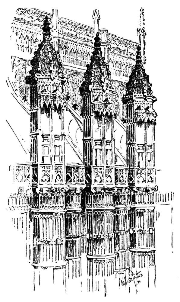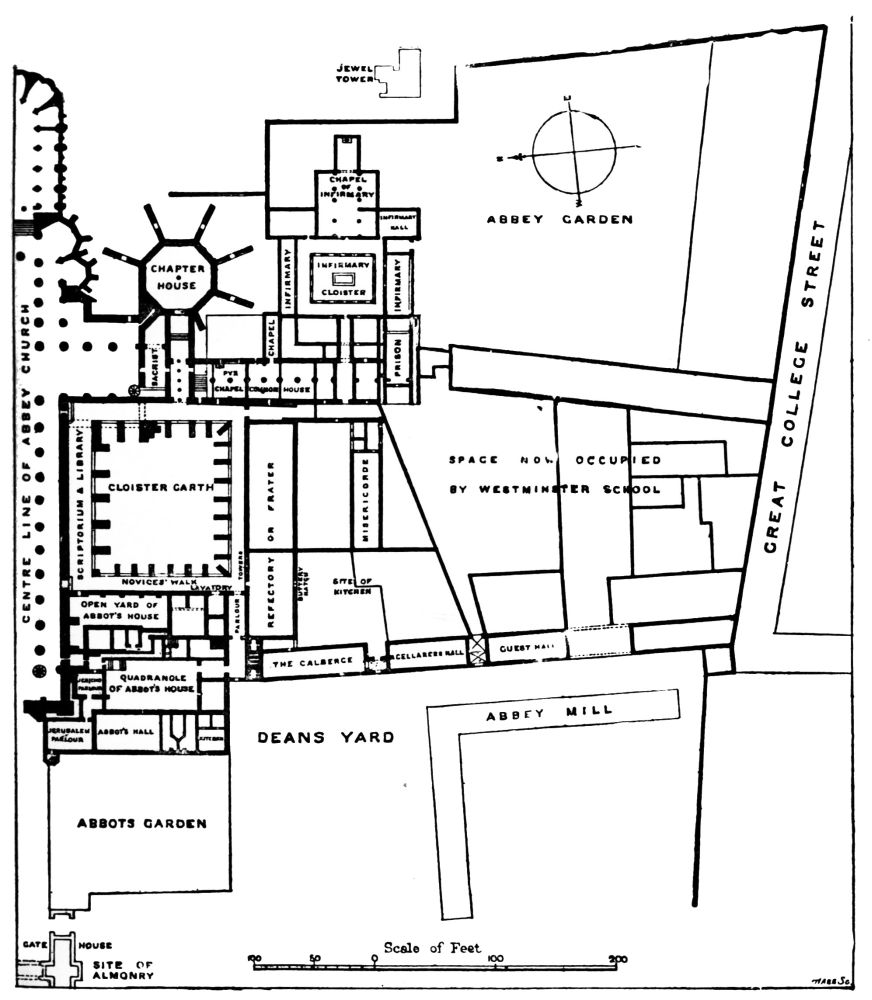 I must not omit my acknowledgments to the Editors of the Pall Mall Magazine for the costly manner in which they presented these pages. Nor{vi} must I forget to record my sense of the pains and thoroughness brought to the work of its illustration by my friend Mr. William Patten; nor my sense of the assistance rendered me by Mr. Loftie for many consultations and suggestions; nor my thanks to the Benedictine Fathers of Downside, near Bath, who kindly received Mr. Patten and myself as their guests and showed us what a modern Benedictine House really means, and how the House at Westminster may have been during its five centuries of existence, even such as their own, a Home of Religion and Learning.