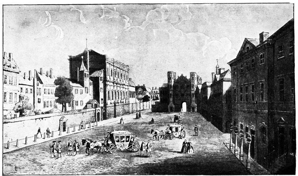 We may consider that for five hundred years the Court and the Church, the Palace and the Abbey, divided between them the whole of Thorney Island. Until, therefore, the swamps were drained, there was no place—or a very narrow place—for houses and inhabitants on the south and west. Toward the north, between New Palace Yard and Charing Cross, houses began and grew, but quite slowly. Even so recently as the year 1755 the parish of St. Margaret’s had extended westward no farther than to include the streets called Pye Street, Orchard Street, Tothill Street, and Petty France, now York Street. King Street was the main street connecting Westminster with London by way of Charing Cross; and east and west of King Street, at the Westminster or southern end, was a network of narrow streets, courts, and slums, a few of which still exist to show what Westminster of the Tudors and the Stuarts used to be.{4}