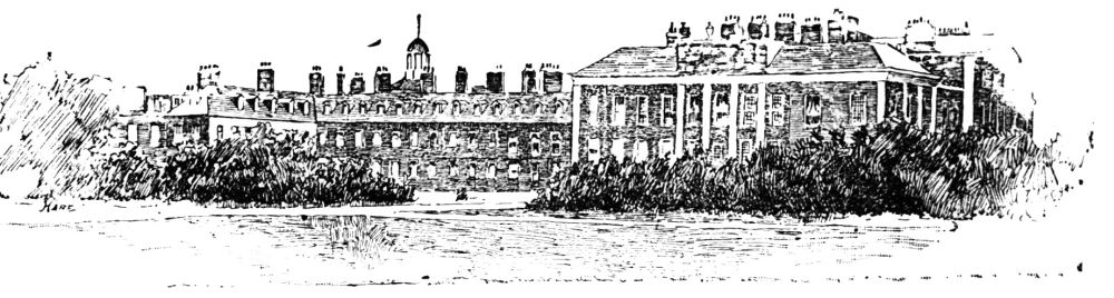 The island thus formed covered an area of four hundred and seventy yards long from north to south, and three hundred and seventy yards broad from east to west. At some time or other—after the disappearance of the ford—the Abbey precinct was surrounded by a wall. In the same way St. Paul’s, in the midst of the City, was surrounded by a wall with embattled gates. A portion of this wall is perhaps still standing. The wall was pierced by four gates. One of these was in King Street, where the rivulet crossed; one was at{35} the east end of Tothill Street; a third was in Great College Street, and its modern successor still stands on the spot with no ancient work in it; the last was in New Palace Yard. In front of the riverside wall lived the population of Thorney,—the town of Westminster, such as it was,—decayed indeed since the deepening of the river: fisher-folk mostly, who plied their trade on the river. But of town or village, in the time of Edward the Confessor, there was little or none.