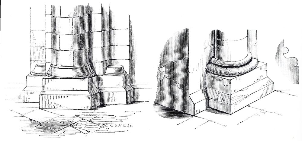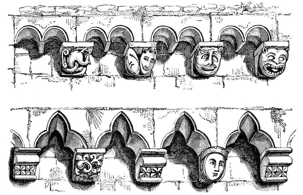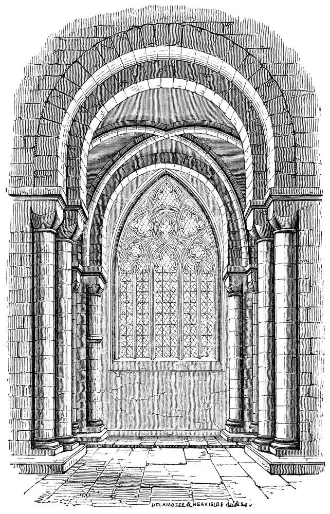 In this work I have purposely omitted the remains of Roman villas, and of the churches between the Roman and the Norman period, of which the remains are more numerous than is generally supposed, especially the substructures, or crypts as they are called, and there are several churches of the eleventh century that do not belong to the Norman style. The Saxons appear to have been more advanced in the fine arts such as{7} Sculpture than the Normans, but their churches were on comparatively a small scale, and were generally swept away by the Normans as not worth preserving: every one of our cathedrals was rebuilt by the Normans, and not always exactly on the same site, the old church being sometimes kept for use whilst the new one was building. Although these remains are of great interest to the antiquary, they have nothing to do with the history of Gothic architecture, which is certainly developed from the Norman, and the change did not begin till after the middle of the twelfth century, or about a century after the introduction of this style by Edward the Confessor: the remains of his abbey at Westminster are clearly Norman, and quite distinct from the Saxon character, but this style is called by the French antiquaries ANGLO-NORMAN, and this is quite correct. Normandy was then a province of the dominions of the King of England, and there are scarcely any buildings in Normandy earlier than the time of the Conquest.