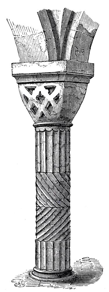 St. Alban’s Abbey Church, built in the time of William the Conqueror and William Rufus, as distinctly recorded by contemporary historians, partakes of the Saxon character in many parts: we find baluster shafts in abundance, quantities of Roman tiles, and other features usually considered Saxon, but there is not the slightest doubt that the church was built from the foundations after 1077, when the work was commenced by Abbot Paul of Caen. The materials of an older church are used in it; they were probably brought{19} from old Verulam, with the Roman flat bricks, which are largely used in the construction.