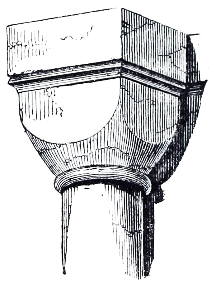 Gundulph built the keep of the castle in London called the White Tower, and the cathedral of Rochester, of which we have a part of the crypt, and some remains of the wall of the nave and north transept. The whole of this work is extremely rude; the construction is usually rubble. When of ashlar, the joints are very wide, and the capitals of the shafts clumsy.