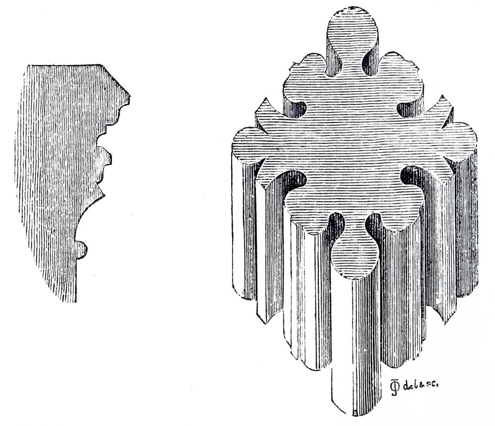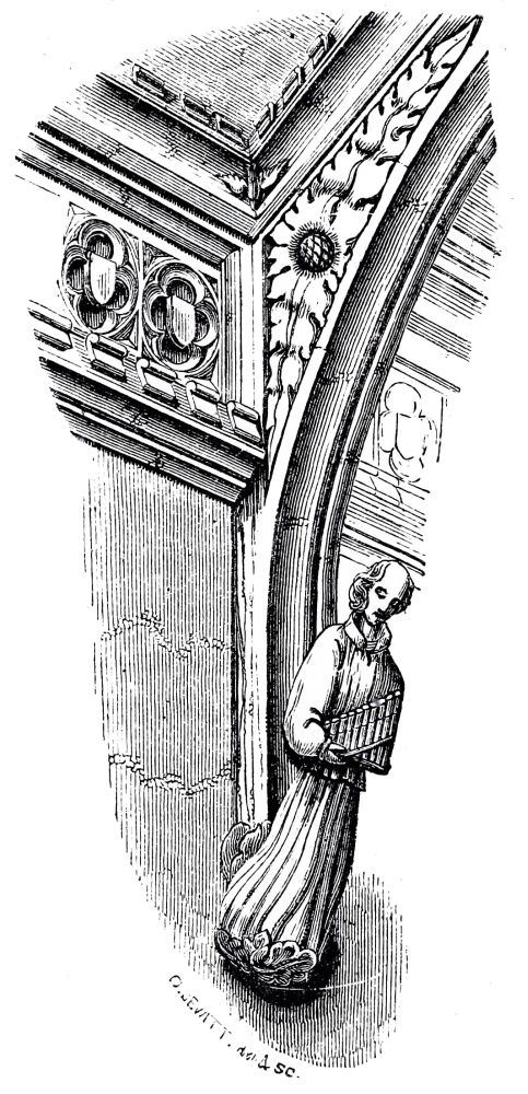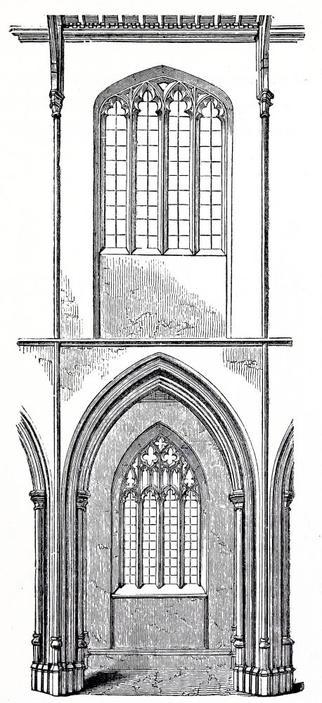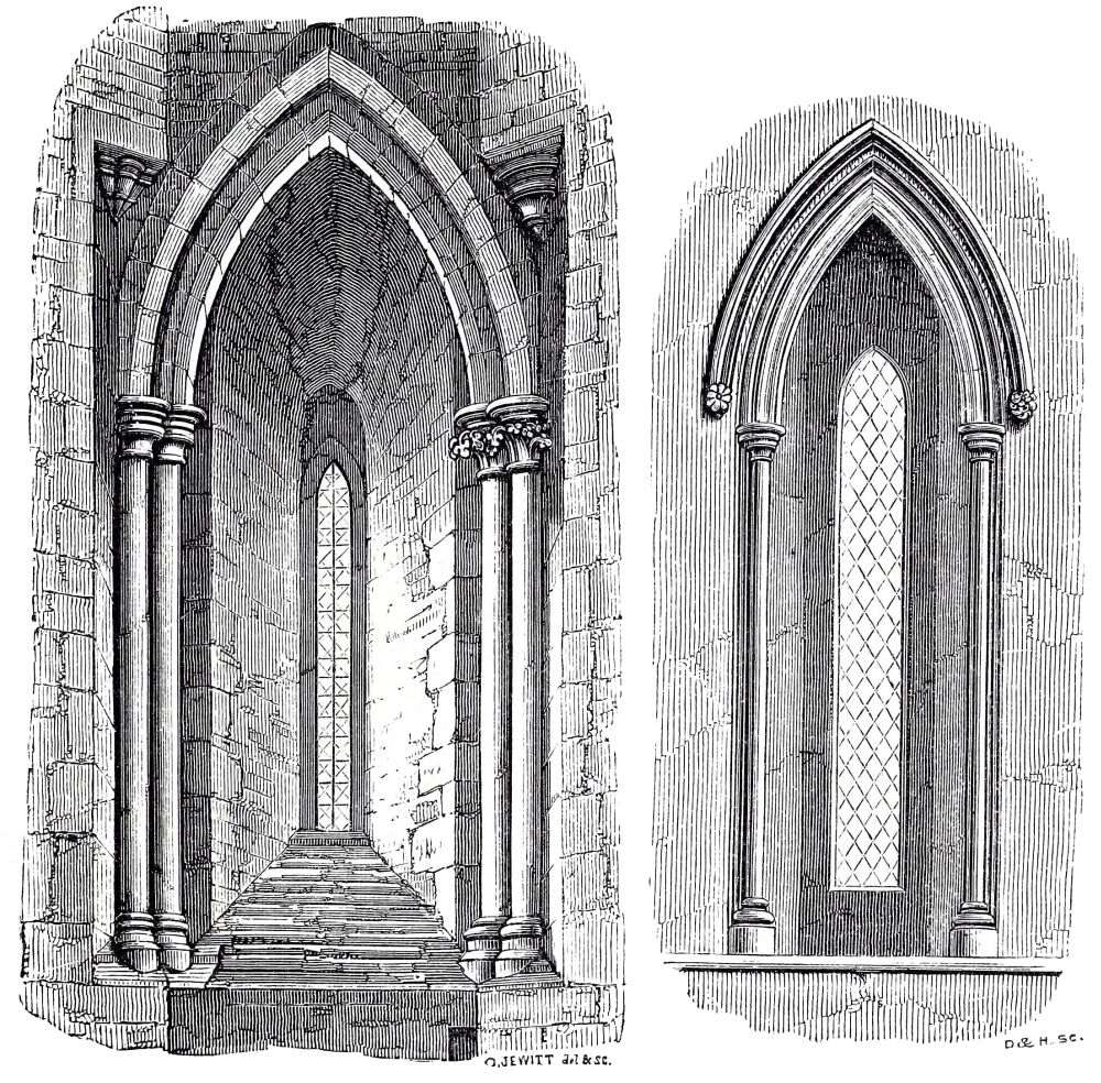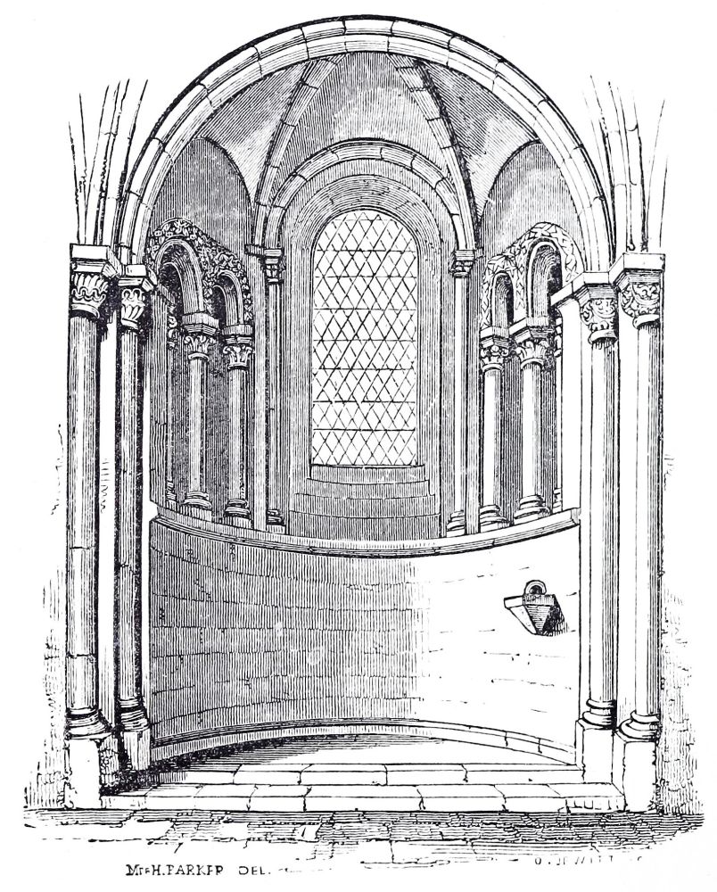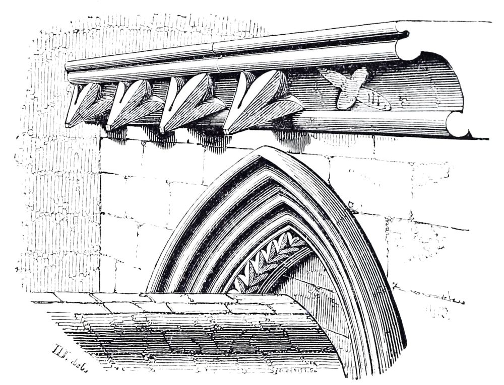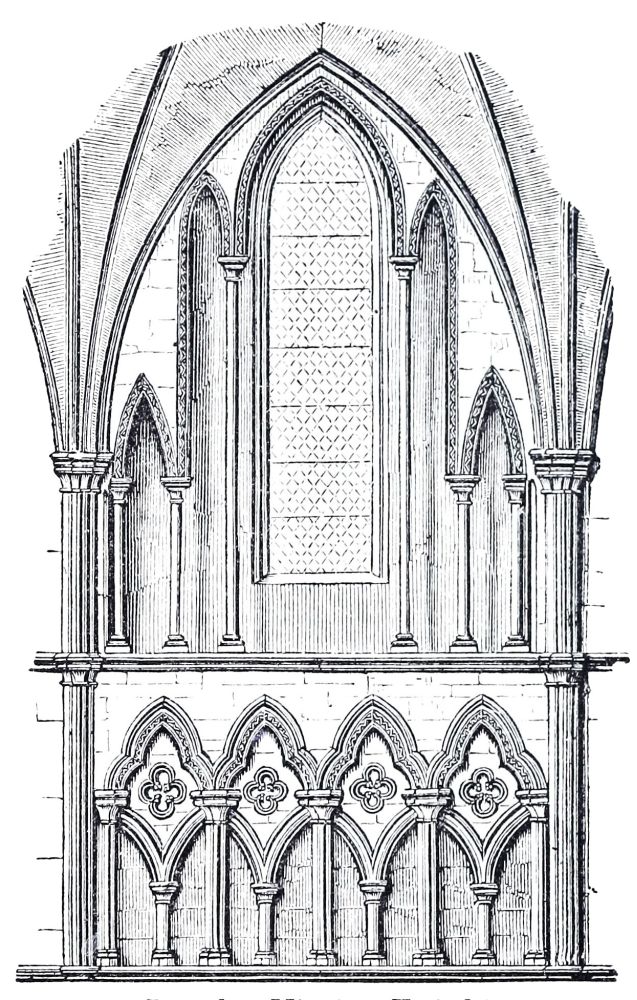 The small church of Clee at the mouth of the Humber, of which the chancel and transepts and central tower were rebuilding almost at that time, are still more Gothic, and this work was consecrated by S. Hugh in 1192, as recorded by an inscription; this was the very year in which he began rebuilding the choir at Lincoln, which was finished, as we have said, in 1200. Many of the churches of the rich Norman Abbeys in the south of Yorkshire, and north of Lincolnshire, are nearly as much advanced at the same period; and the west end of the great abbey church at St. Alban’s, begun by De Cella about A.D. 1200, is also pure Gothic: of this, unfortunately, we have only a few remains.