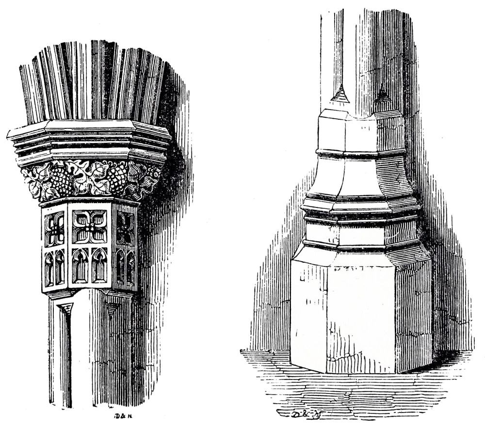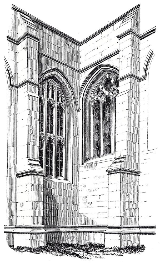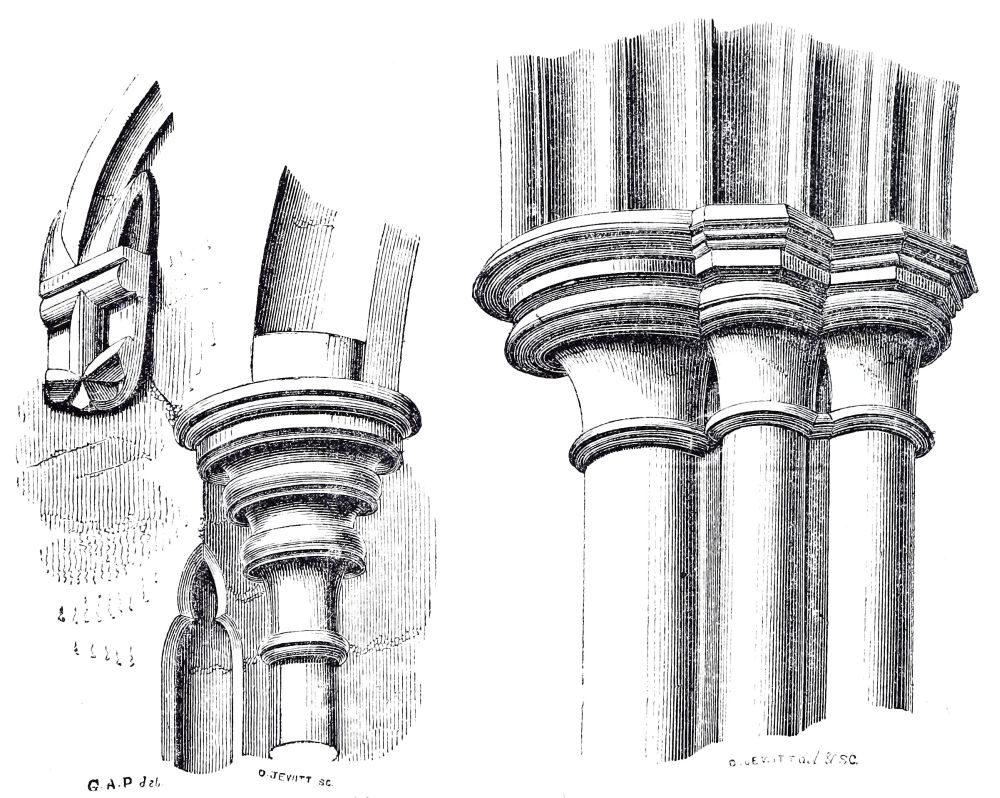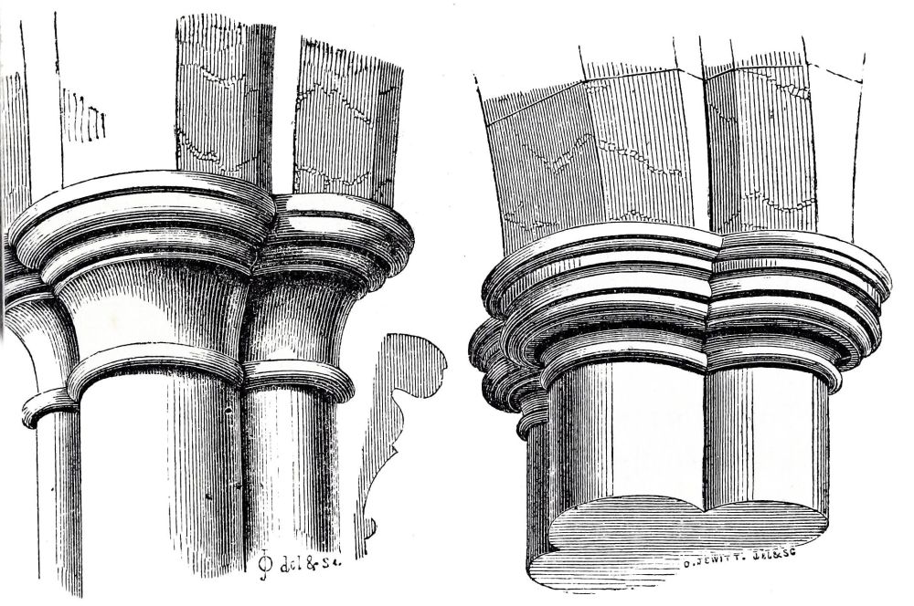This example is valuable to us also in another respect: the two transepts were only partially injured by the fall of the tower; the greater part of both of them belongs to the original work; the junction of the old work and the new can be distinctly traced; and here we begin to find a difference of character in the new work, and a mark by which we can{27}