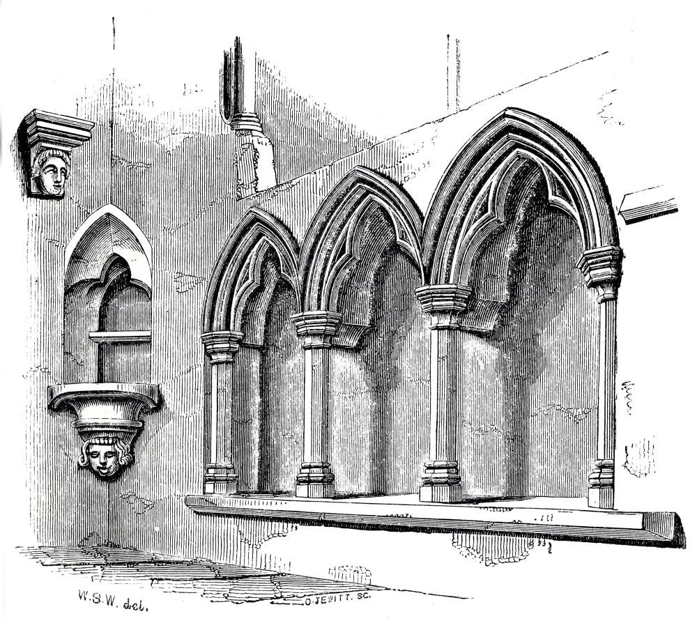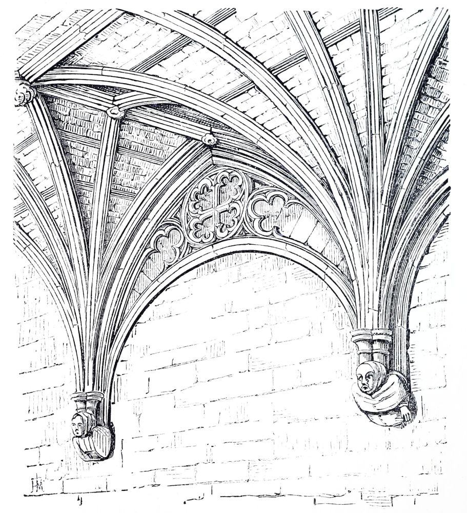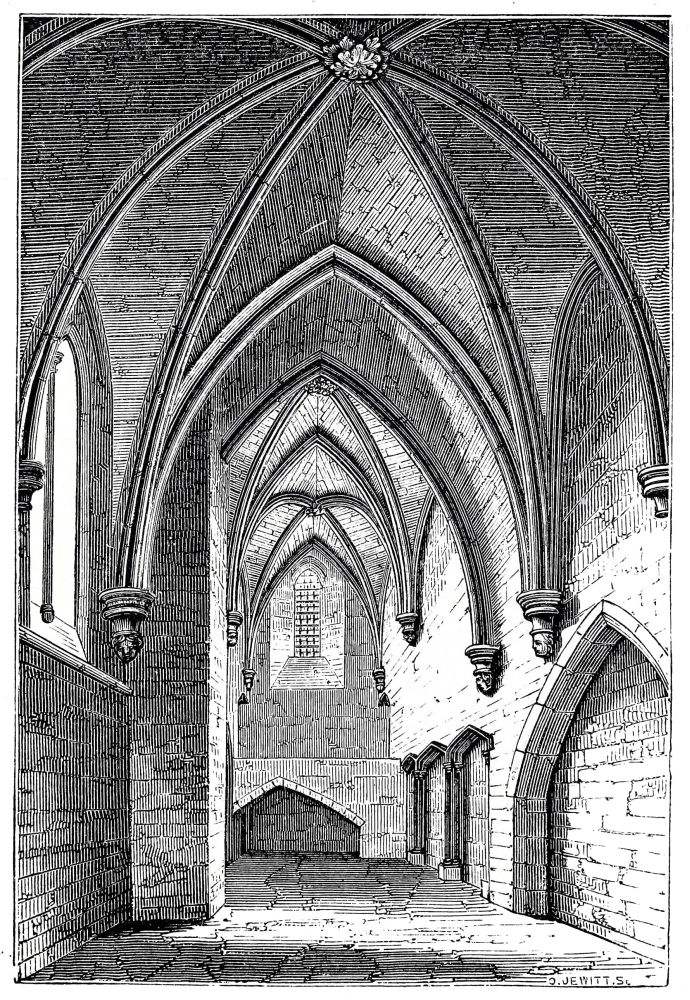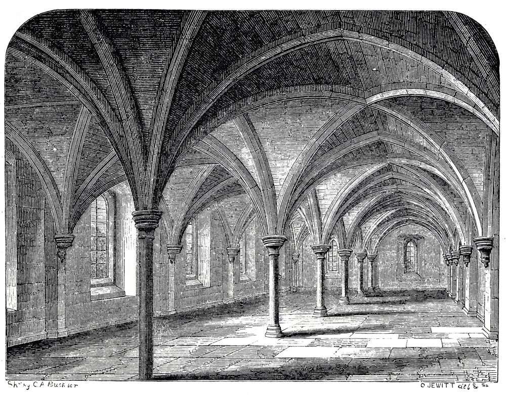 The Dark Cloister under the Dormitory, now the Schoolroom, and Windows of the Dormitory.