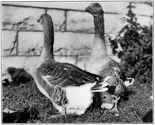 Fowls in yards must be supplied with everything they require, which means, all they would naturally seek if running at large. This includes, besides the grain we feed by formula, green food, meat, a scratching place and dusting spot, and grit and water. Of all these I consider green food the most necessary, and the one thing to be impressed upon the mind, because it is the one thing too often forgotten. Green 20 food of any variety is acceptable. The ideal yarding of fowls is what is known as double yarding—a house in the middle and a yard on each side. These yards can be sown with rye or oats, and alternated so that the fowls will have a constant green run as long as the rye or oats will grow, which is until frost. Failing the double yard system, green food may be supplied by lawn clippings, whole cabbage, clover hay or sprouted oats, fed in a variety of ways. Turning up the ground of the yards with a cultivator or by shallow ploughing, will bring the worms and bugs within reach, or sheep heads cut open and fed raw can be thrown in, and this is an ideal meat food. Ground beef scraps may be mixed in mash—and last, and probably the best, cut green bone.