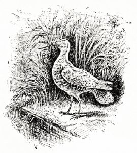 When the wind in a storm is not too high, the birds usually remain on the sea-beach, but when it is violent you will run a pretty fair chance of finding them inland. During the southeaster mentioned, if the wind is rather high and there is a heavy tide, Sand-piper likes nothing better than to spend the day paddling around on the flooded salt-meadows, picking up the little worms and bugs that have been soaked out of their homes in the grass and soil. Here you will find him in large flocks, travelling by short flights from one end of the meadow to the other, showing very[Pg 1017] little disposition to move on. But above all his happiness seems wholly complete if he can find a meadow on which the grass has been cut and not collected in mows at the time of the overflow. The floating grass affords a refuge for all the washed-out bug inhabitants of the meadow, and the snipe make the most of the rare treat offered. This kind of meadow-shooting is very pleasant, as the birds will not fly far when "flushed," and it is possible to follow a flock all around the meadow, securing several shots before it takes flight for good. The sedge islands at the mouths of rivers and bays are great feeding-grounds when the wind is not so high, and tide not sufficient to flood the fields.