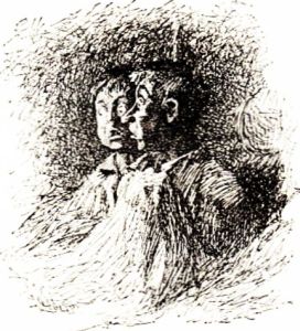 "'Ha, ha, ha, ha!' he yelled. 'Ye don't believe I'm genuwine, eh? I'll show ye!'