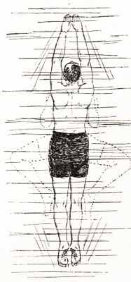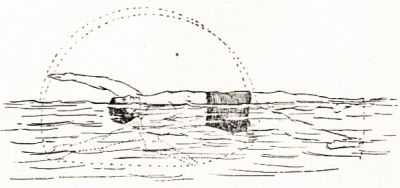 The sand-piper always flies on a dead level, about a foot above the water, unless the flock is flying high to escape some obstruction. He propels himself with a jerky motion of the wings, a stroke, and then an instant's soaring, at a pretty fair rate of speed. The "yellow leg," a larger variety, on the contrary, flies quite high, and sometimes in the formations adopted by the wild-duck. They can always be recognized by their peculiar whistling call. The predominating colors of the snipe family are gray and white, though some few have a touch of brown on the back plumage. There is also a slight variation in the length and shape of the bill, though the character is about the same in all. The legs of the snipe are long and a greenish-yellow in color; those of the "yellow leg" being almost a bright yellow. The sand-piper is a very rapid walker, or perhaps, more properly, runner, and this remarkable facility should always be borne in mind when a bird is only "winged." When not frightened they usually travel in a very irregular course along a beach, but when frightened they will make as straight a line as the best sprinter. These little birds are very good swimmers and divers, remaining under water for a long time, propelling themselves with great rapidity by the use of their wings.